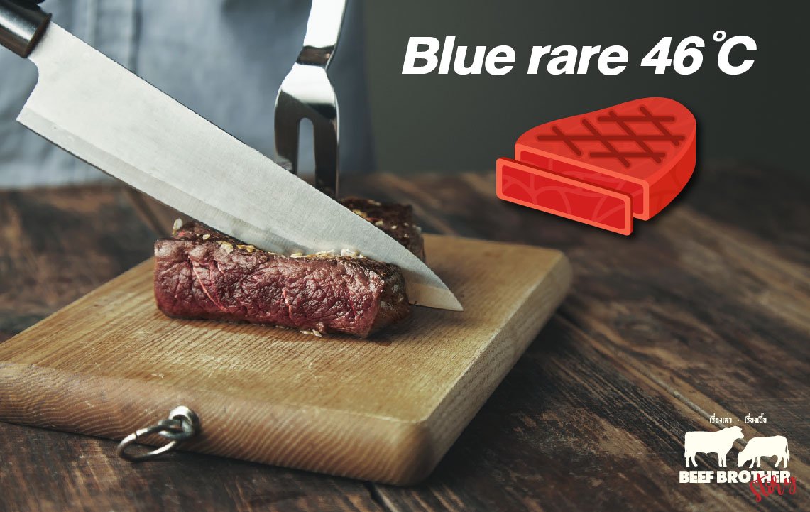 อุณหภูมิ : ภายในชิ้นเนื้อควรวัดได้ประมาณ 46 °C