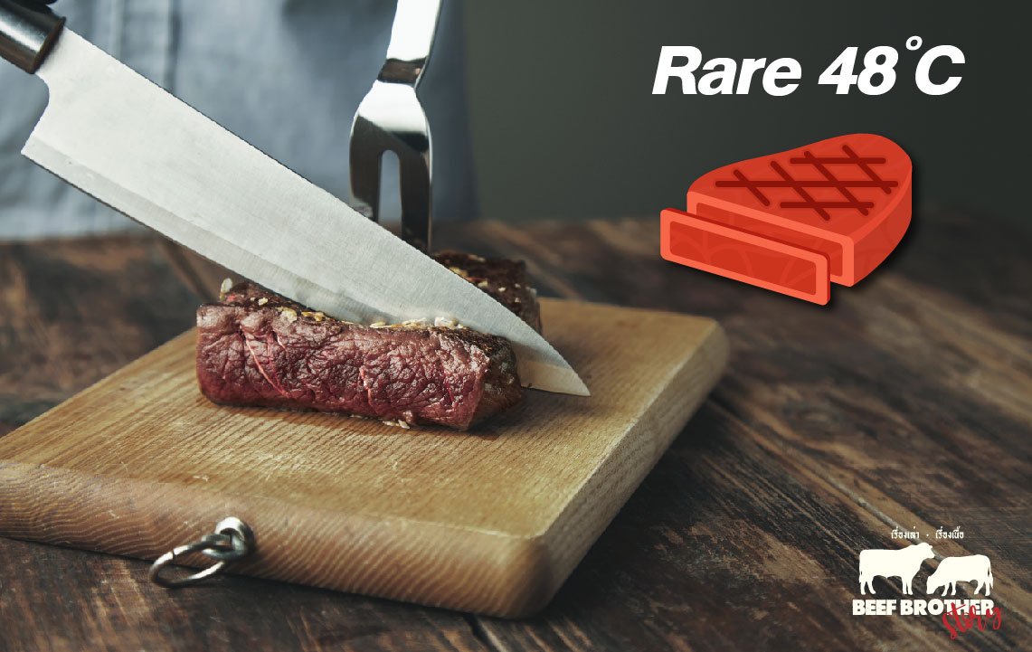 อุณหภูมิ : ภายในชิ้นเนื้อควรวัดได้ประมาณ 48 °C