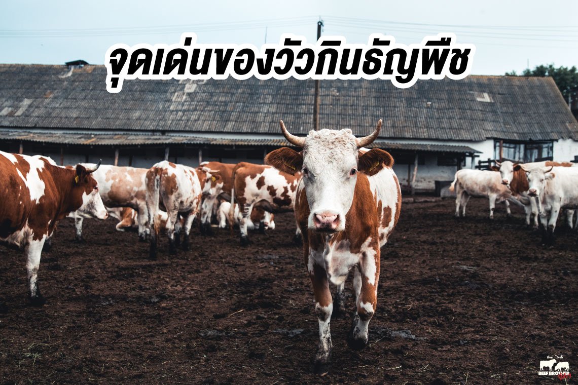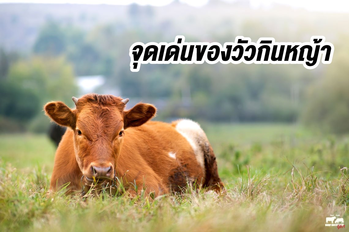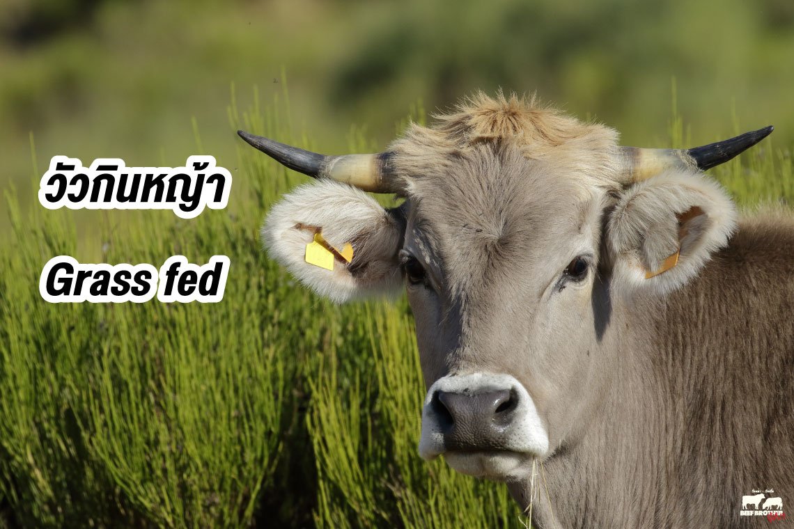 วัวกินหญ้า เป็นวัวที่ถูกเลี้ยงดูในทุ่งหญ้ากว้างๆ เพื่อให้วัวได้เดินเล่นได้อิสระและหากินหญ้าเองตามธรรมชาติ โดยอาหารหลักๆเป็นหญ้าสีเขียว โดยภายในหญ้าที่วัวรับประทานเข้าไปจะมีสารสีจากหญ้าที่อุดมไปด้วยแคโรทีน จึงทำให้ตัวเนื้อทีออกมาจะเป็นสีเหลืองอ่อนนิดๆ จุดนี้เองที่ทำให้รสชาติของเนื้อ Grass-Fed Beef มีรสชาติที่ดีในแบบที่เป็นเอกลักษณ์ และเป็นที่นิยมในกลุ่มของผู้บริโภคเนื้อวัวเป็นส่วนใหญ่ ทั้งนี้วัวยังเดินเล่นได้อย่างอิสระ ซึ่งเป็นการออกกำลังกายไปในตัว ทำให้วัวชนิดนี้นั้นมีมันน้อยกว่า วัวกินธัญพืช