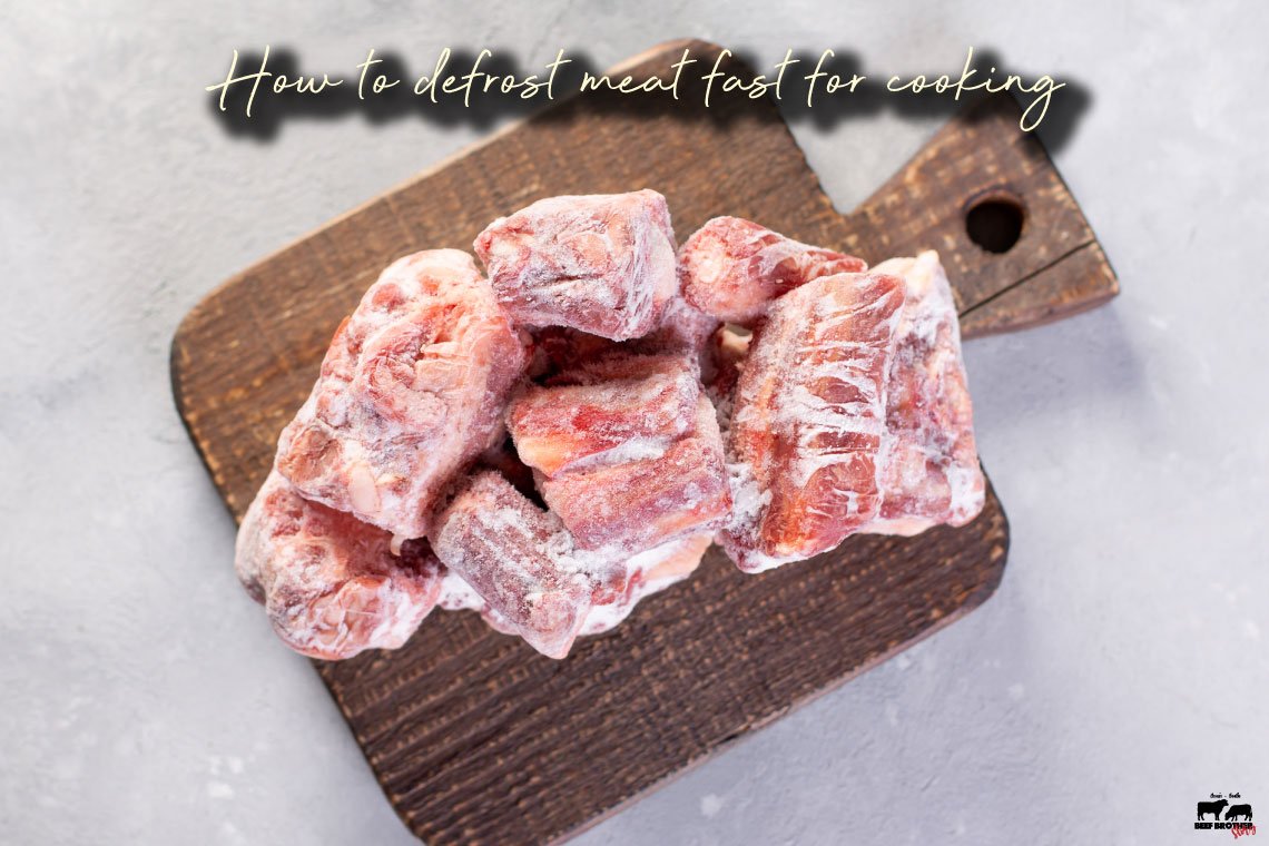 เริ่มต้นแกะเนื้อวัวแช่แข็งออกจากถุงสุญญากาศ หรือบรรจุภัณฑ์ หลังจากนั้นวางเนื้อแช่แข็งลงบนภาชนะที่สามารถใส่ในเตาไมโครเวฟได้ กดปุ่มดีฟรอสต์ (Defrost) หรือปุ่มละลายน้ำแข็ง ให้ใช้กำลังไฟต่ำ-ปานกลางที่ประมาณ 160-200 วัตต์ ตั้งเวลาประมาณ 2-3 นาที ความนานจะขึ้นอยู่กับขนาดของเนื้อด้วยเช่นกัน